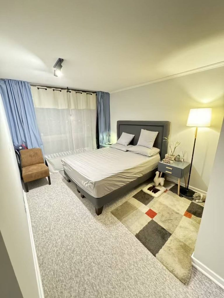 公寓户型为两卧两卫,卧室空间宽敞,带阳台,居住氛围安静舒适。包含车位与大储物间(约 12–15 平方米,为楼内最大)。大楼提供洗衣房、健身房、会议室及烧烤区等多项公共设施。可于 2022 年 3 月交付。