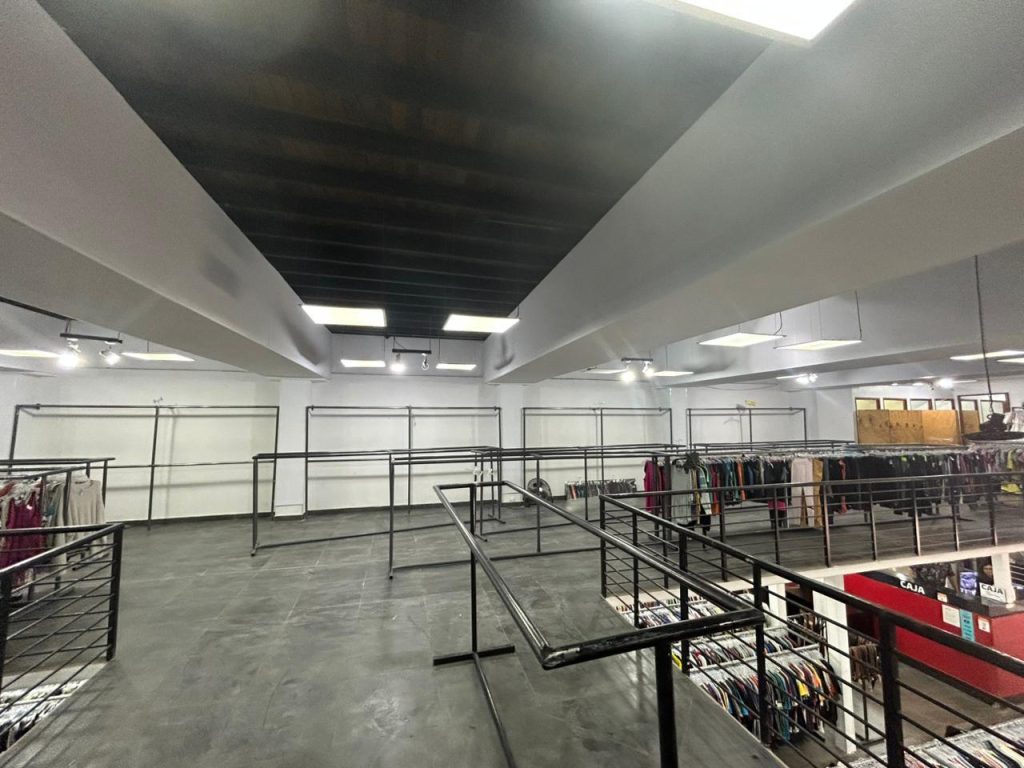 整栋三层建筑,每层约 600 平米,其中 1-2 层为店铺,3 层为仓库。临街面宽,位于人流量非常高的 Bandera 街。适合百货经营,但一楼有柱子需规划好货架布局。租金 450 UF/月,为阶梯计价方式。签订合同后两个月可交付。具备有效的最终验收证明。