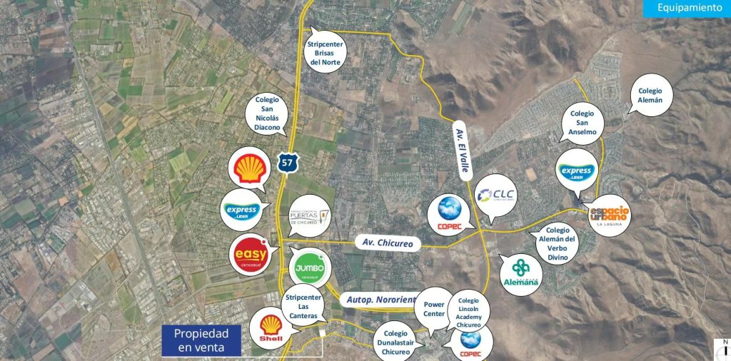 位于Chicureo优质地段,土地面积15000平方米,临近Avenida del Valle。周边有大型超市、加油站、学校、医院及高尔夫球场,商业潜力巨大,适合建设商铺或mall chino等项目。有意者请联系得佑地产,电话+569 26299955,微信Deyou_propiedades。” }