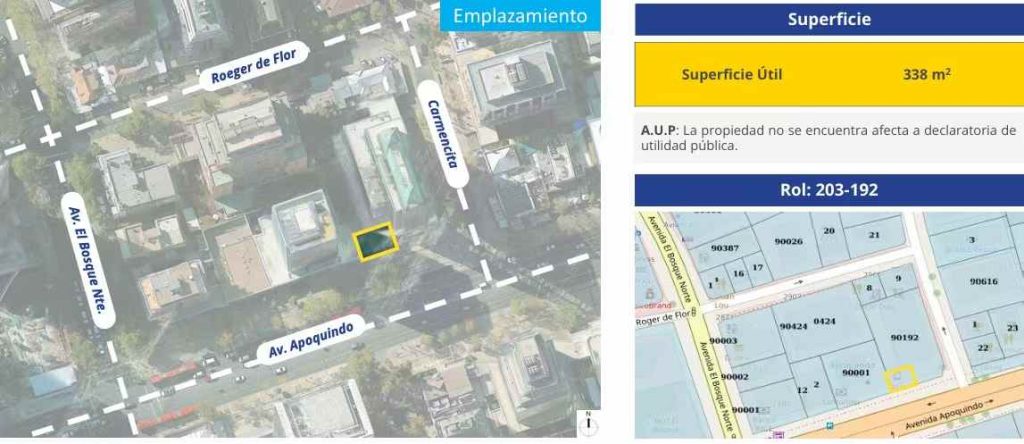 该商铺使用面积为338㎡,租金为0.85 UF/㎡,管理费(GGCC)为0.14 UF/㎡。物业位于Las Condes东部核心El Golf区域,周边集中了银行、写字楼、律师事务所、医院及多家国际品牌餐饮与零售店。步行至地铁L1 El Golf站约4分钟,至L1/L4 Tobalaba站约5分钟,同时距离未来L7 Isidora Goyenechea站约10分钟步行距离。区域人流量大,消费能力强,适合高端零售、餐饮、诊所、美容中心、教育培训及专业服务类经营。