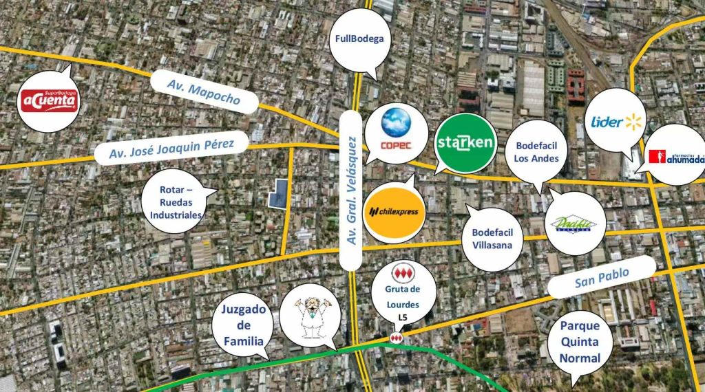 本物业包含4座独立仓库及办公区域,面积分别为:仓库1:1,568㎡;仓库2:548㎡;仓库4:682㎡;仓库5:671㎡。位于圣地亚哥核心工业走廊,紧邻General Velásquez与Mapocho要道,交通与物流通达性优越。适用于仓储、电商配送、物流中转及轻型生产操作。可安排实地参观,欢迎联系。